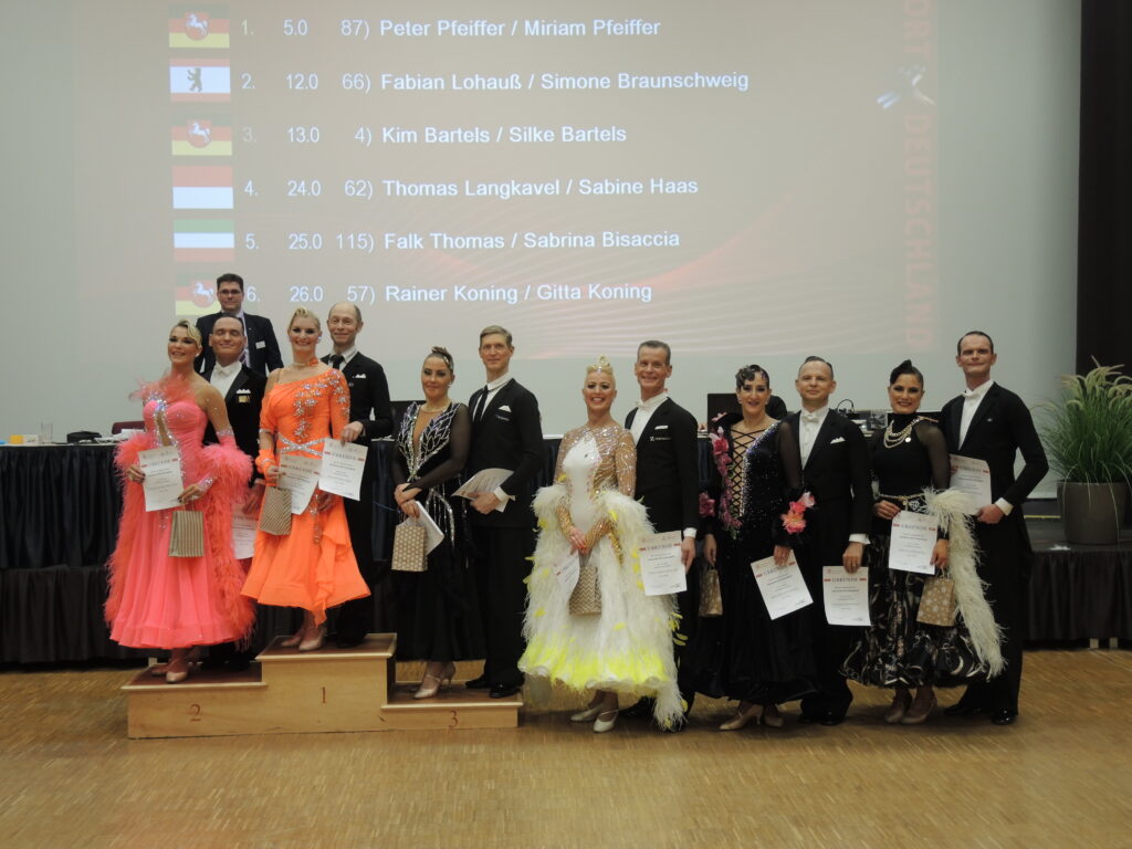 Am Samstag tanzten folgende Paare im Senioren III-Turnier mit, zu dem 111 Paare gemeldet waren: Horst & Birgit Sobotta (Sen IV), Dieter & Insa Felgendreher (Sen III), Björn Caesar & Frauke Niebuhr (Sen III) sowie Kim & Silke Bartels (Jahn-Trainingspaar, TSA des VfL Wolfsburg).